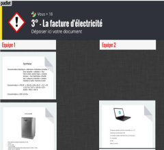 - Étape 3 : Les documents sont déposés sur le mur virtuel Padlet de la classe. (Un exemple : https://padlet.com/SciPlus/rgeyod16hexk). En synthèse, un échange avec la classe permet de mettre en avant le coût d’usage d’une installation électrique.