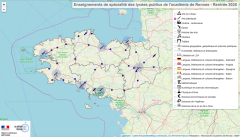 Carte académique des enseignements de spécialité du réseau public arrêtée pour la rentrée 2020 :