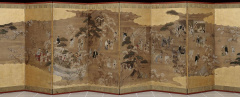 En illustration - Moronobu Hishikawa, Divertissements sous les cerisiers en fleurs, 1680-1690, encres de couleur et feuilles d’or sur papier, 110 x 388 cm, Musée Guimet, Musée national des arts asiatiques (MNAAG), Paris