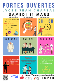 Le lycée Jean Antoine Chaptal à Quimper organise sa journée portes ouvertes le samedi 11 mars 2023 de 9 h à 16 h.