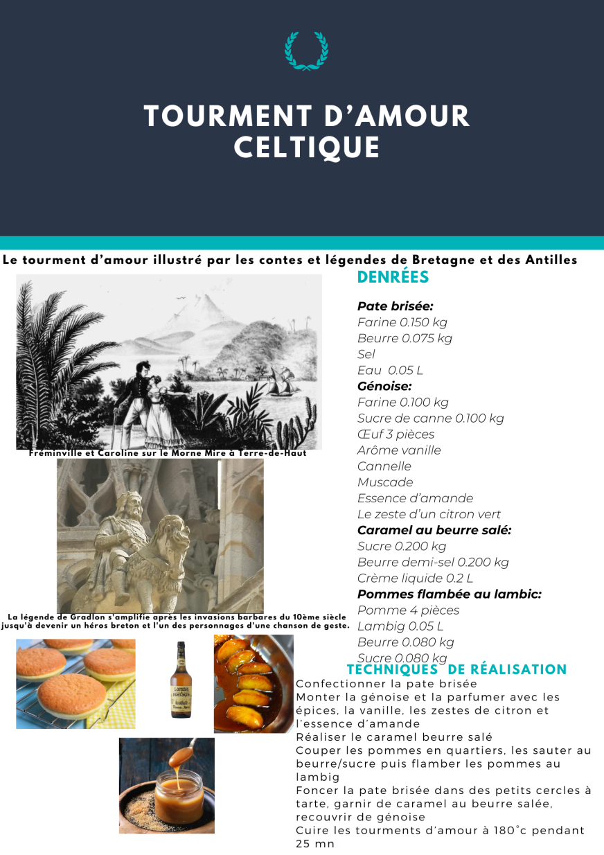 - Dans un troisième temps, il est demandé aux élèves de réaliser une présentation « Canva » de leur recette (exemple du tourment d’amour celtique ci-dessous).