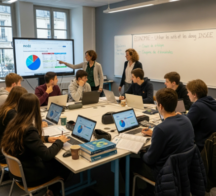 - Ressource 1 : « Utiliser les outils proposés par l’Insee dans le cadre de l’élaboration d’une séquence pédagogique ». Cette première ressource présente les différents outils de l’Insee. Elle s’apparente à une « fiche méthode ». Les outils de l’Insee y sont présentés ; des exemples de transpositions didactiques sont proposés.